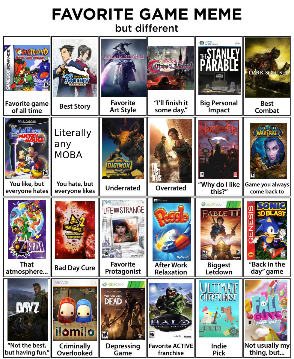 If you discover this site serviceableness, please support us by sharing this posts to your preference social media accounts like Facebook, Instagram and so on or you can also Get this blog page with the title Favorite Game Meme But Different by using Ctrl + D for devices a laptop with a Windows operating system or Command + D for laptops with an Apple operating system. If you use a smartphone, you can also use the drawer menu of the browser you are using. Whether it's a Windows, Mac, iOS or Android operating system, you will still be able to bookmark this site.